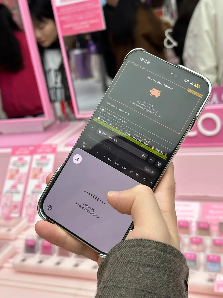 上周在浦东机场候机,旁边的人在刷抖音,我在用手机让 Claude Code 帮我改 bug。