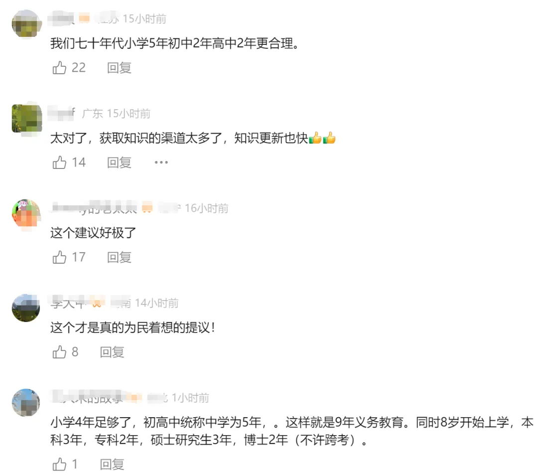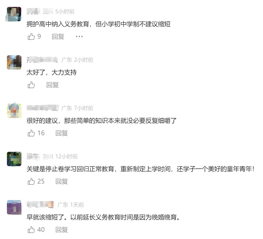 你支持缩短学制、将高中纳入义务教育,小学4年+初中2年+高中3年的提案吗?