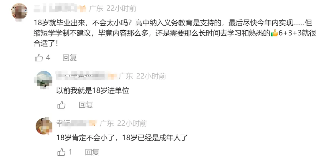 也有网友表示:18岁就本科毕业,这么小这么早出来就业,有工作岗位吗?那么多的内容要学,缩短学制只会让学习更卷。