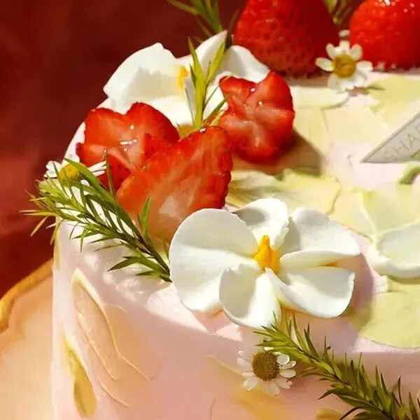 ◯ 原料精选:原味动物奶油、新鲜草莓、松软原味戚风蛋糕、草莓轻乳酪动物奶油、蛋白霜