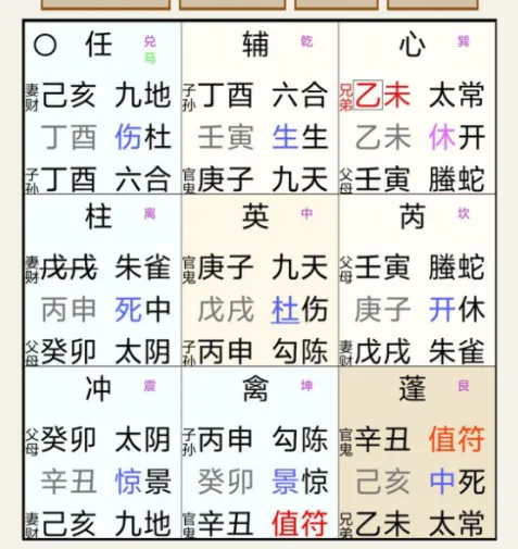 在这个案例就是,巽宫星为天任星,原始宫位艮宫的原始门为生门,看生门落宫的位置,宋奇红管这个叫周游,其实不对,在一本书曾看到过这个用法,并不叫周游。诸如此类用法还有很多,翻禽倒将,转星转甲等等等等,古人取用相当灵活。