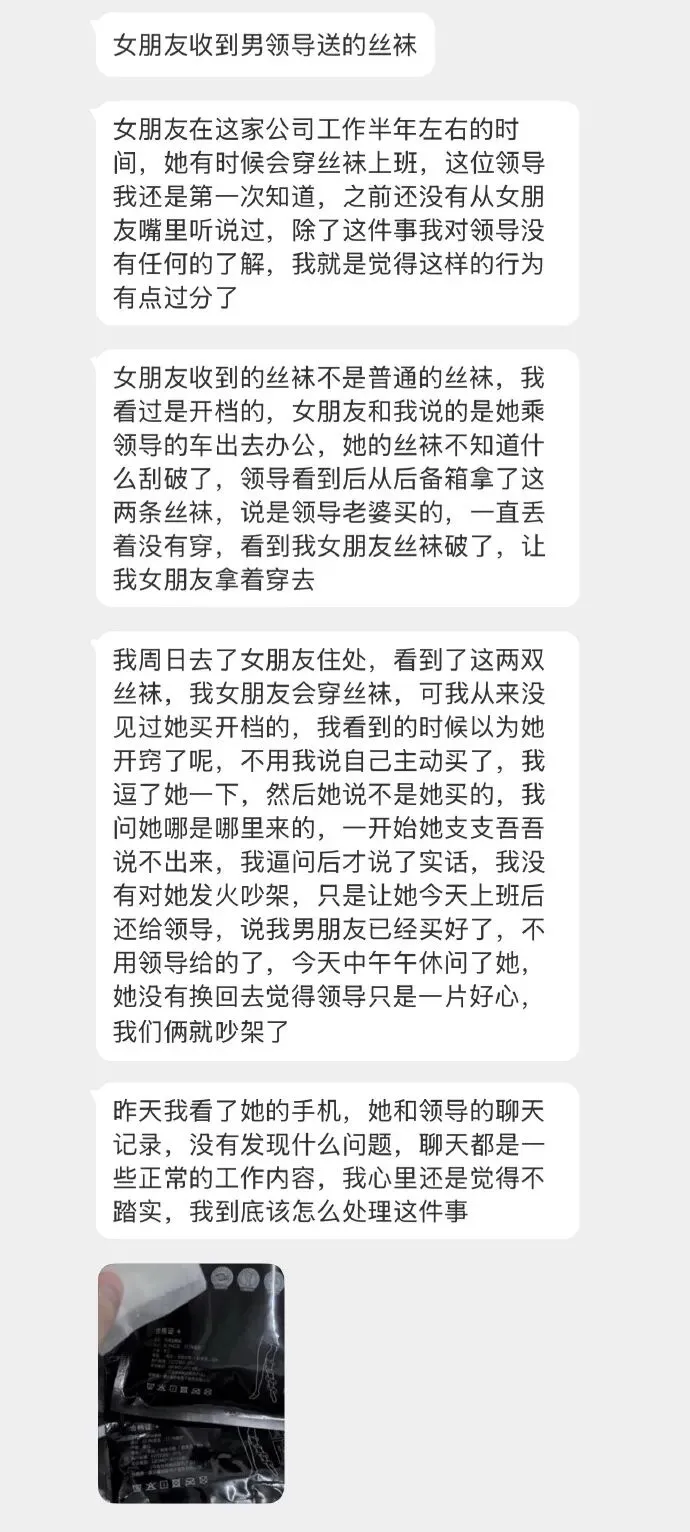 女朋友上班收到男领导送的开裆丝袜,她觉得领导只是一片好心???