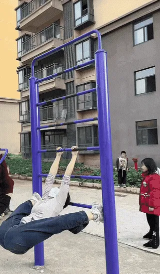小区公园健身器材上“挂满了”年轻女大侠,有一字马、劈大腿、吊臂力、撑双腿,各种练家子功夫是透屏而出,充满了霸道力量啊。