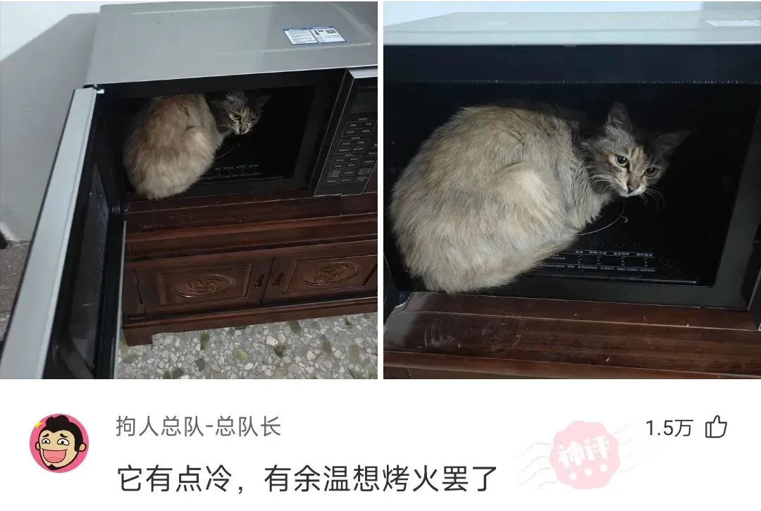 这猫也是带反骨的,说了它几句,它就钻进微波炉了~