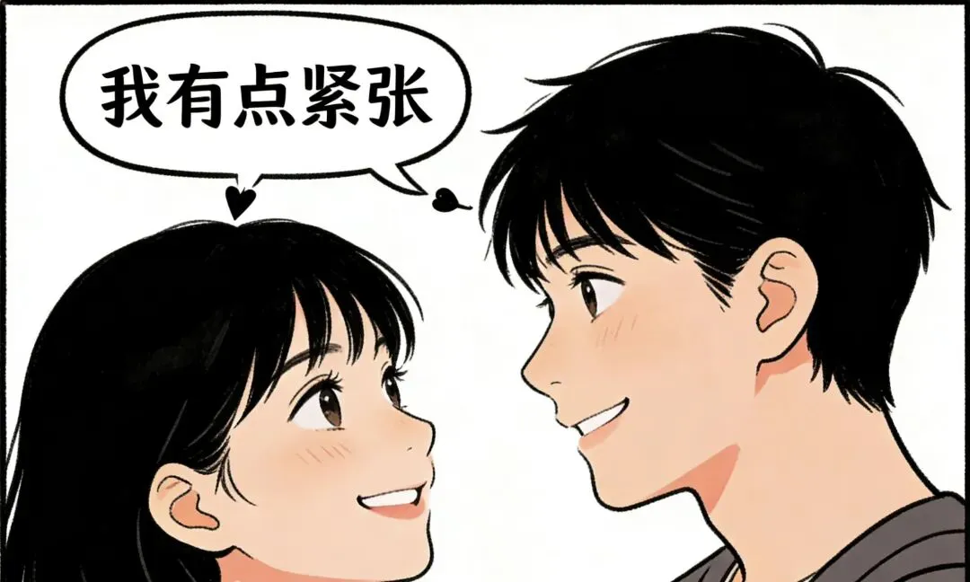 不用强装镇定,不如坦然说出口:“说实话,突然这样我有点紧张,你呢?” 当两个人都承认“我也一样”,会发现原来对方和自己一样忐忑,紧绷的神经会瞬间松弛。就像小时候上台演讲,紧张到忘词时,笑着说“我有点紧张”,台下的掌声反而会给你勇气。