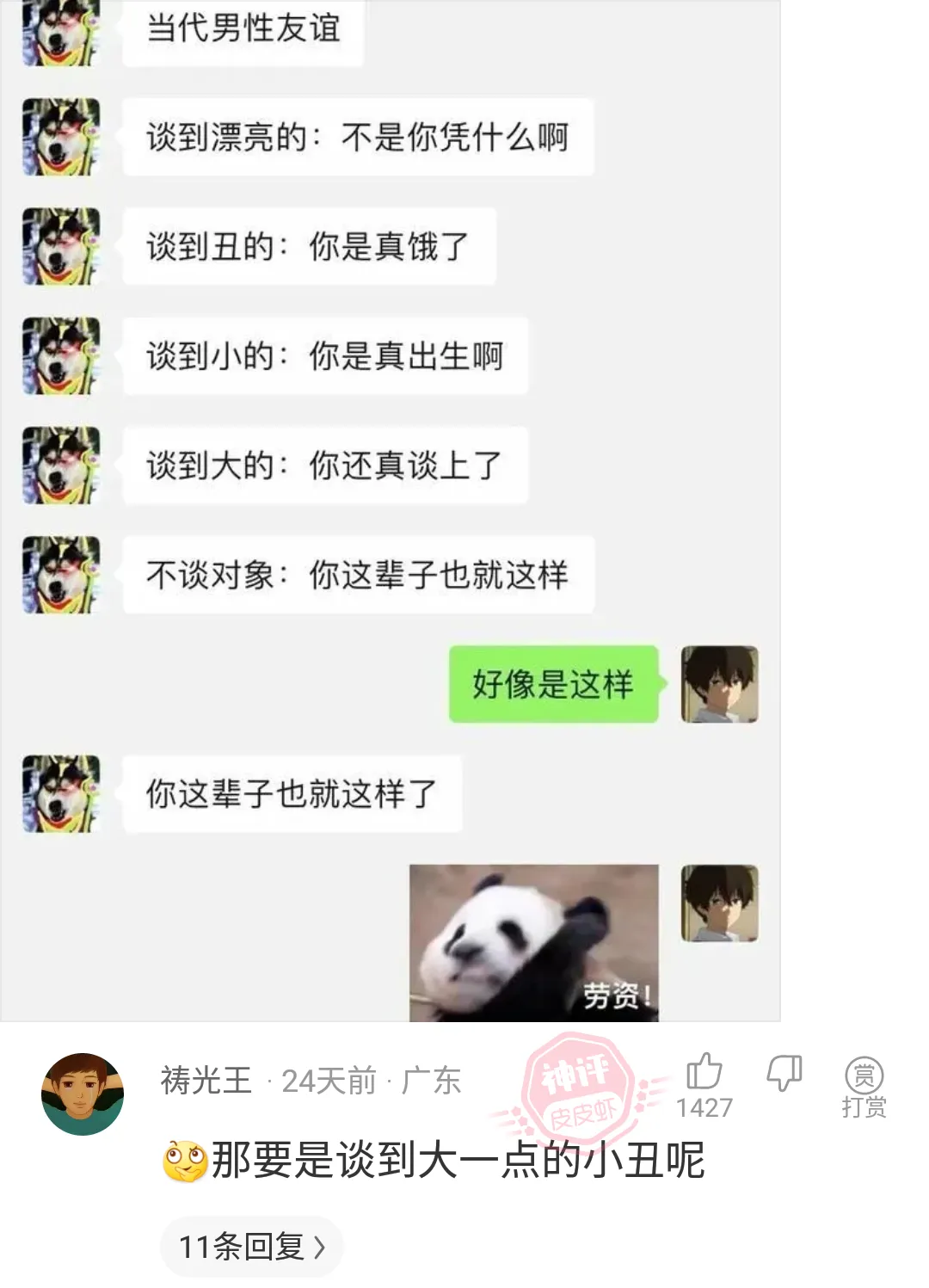 神回复:那要是谈到大一点的小丑呢....................................................................................................