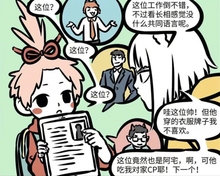 月老还是耐着性子,继续给九月找对象。这一次九月发现一个工作不错,可是觉得因为长相就认定为对方跟自己没有共同语言。好不容易有个帅哥,可是九月竟然挑上了衣服牌子,表示这个牌子她不喜欢。最后还有个跟九月一样是阿宅,只是因为他选了对家当cp,所以也被拒绝了。