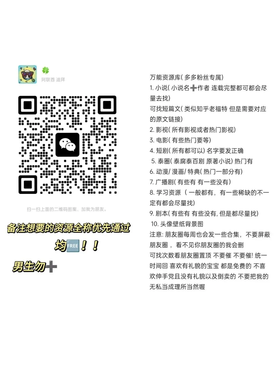 扫码添加多多个人vx免费领取~