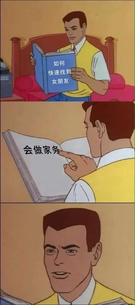 经济学里对爱情的定义,就是一种具有互补效用的非耐用消费品。不出意外,大家这会脑子里应该都有画面,并且差不多都快...那么做家务做得好的人,势必成为脱单市场上炙手可热的存在!在国内你们能遇到合适的另一半的概率是0.0000228,也就是说,约等于啥意思呢…就是在一般情况下,如果你不想着找找自己的互补效用,脱单基本上就是无望状态了!