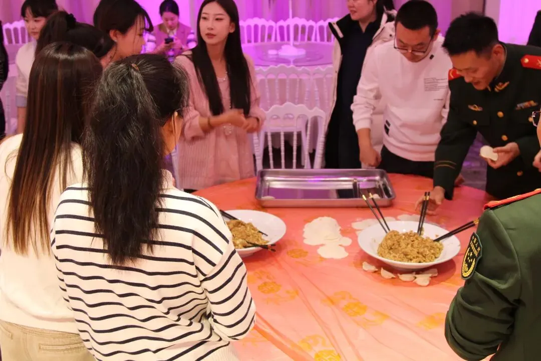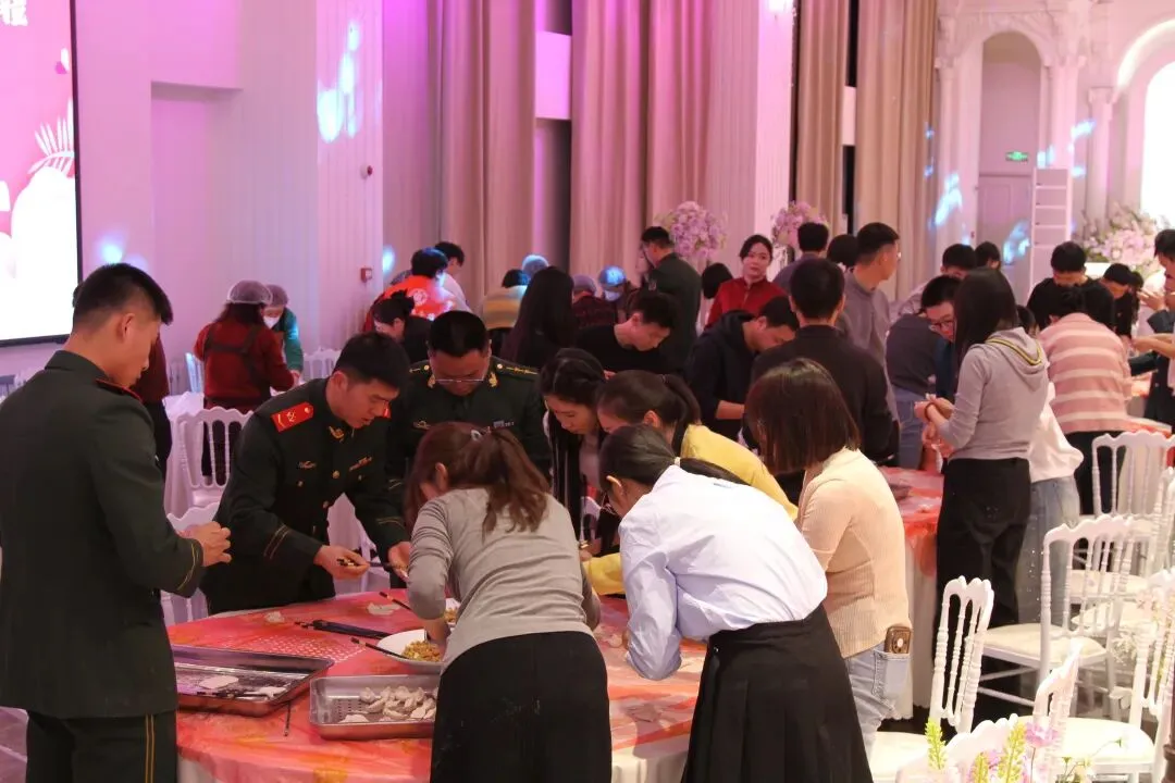 包饺子大赛将活动推向高潮。八支队伍分工协作、有条不紊,形态各异的饺子在大家手中快速成型,尽显新春暖意。