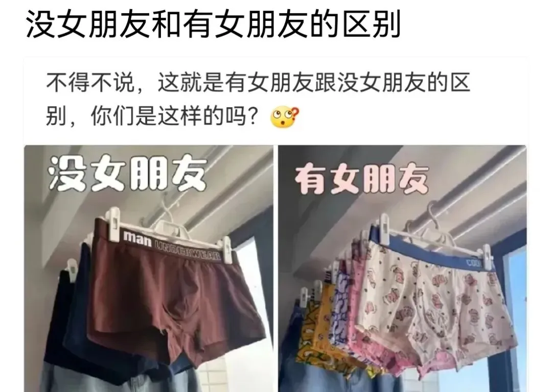 有女朋友和没女朋友,从内裤就可以看出来