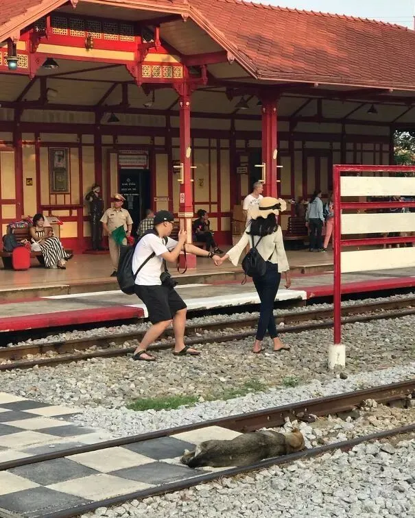 冒着危险也要为女友拍拍拍