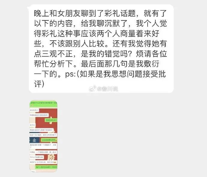他和女朋友聊到彩礼