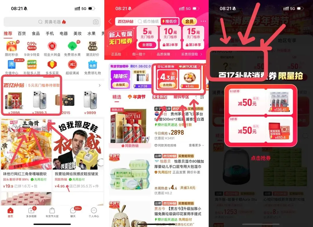 拼多多的反响更是绝了,我前几期可是专门给大家讲过的,每天的整点可以去抽无门槛卷,基本都是8元和18元的无门槛卷,建议这个大家都去薅真的是挺好的,也可以买特别的日用品,我已经薅了几十包纸巾了,我们首先点进拼多多主页,点进去之后,可以看到有一个“百亿补贴”—然后点进去之后有一个,4.3折抽百亿消费卷,进去之后可以看到限时抽神卷,每天的双数整点去抽就可以了,比如上午十点,中午十二点去抽就可以了!