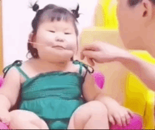 爸爸吃肉,女儿洗签