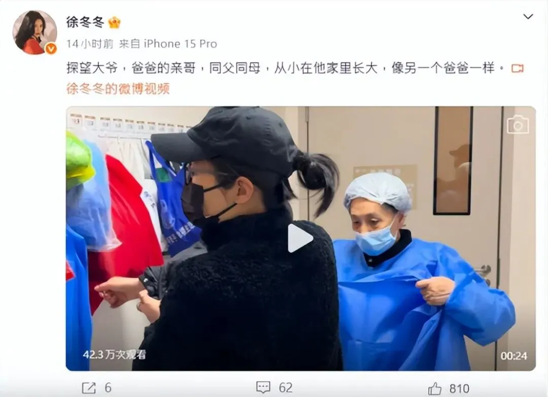 之后徐冬冬又曝光了一段,她去探望亲人的影片。据徐冬冬透露,她此次是去探望她的大爷,就是她爸爸的亲哥哥。