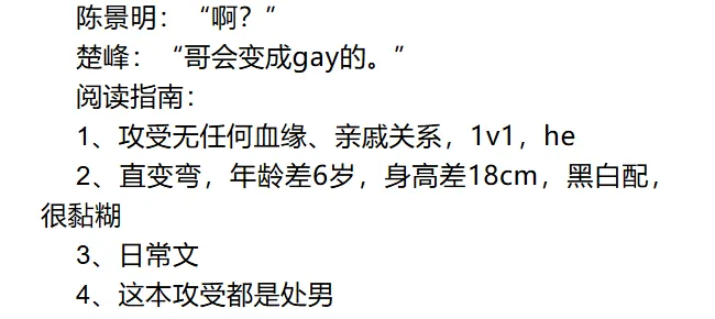 因为攻是养牛的,认识的人叫他老牛,牛哥完全牛塑,管受就叫小牛哈哈。他们的朋友也非常好,聚在一起就跟比格一样werwer的,把攻吵得够呛,攻在里面像是完全差辈了,像所有人都大哥哥一样。他把受的朋友也当妹妹那一段很温馨,大家相处起来又有家人的温馨又有友谊的要宝,看得我也一直在笑,一定要配合段评使用,大家都非常有梗。