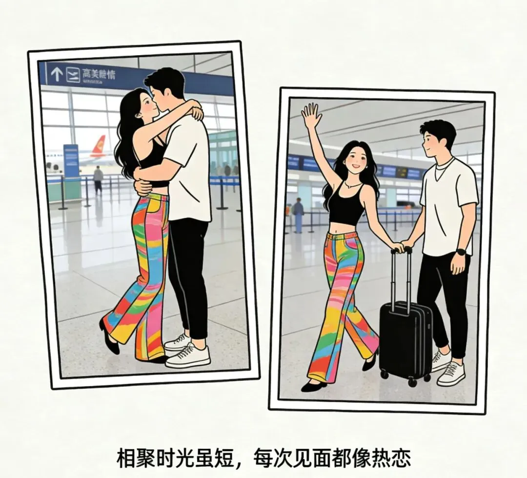 “我女朋友飞国际线,最长一次八天没见面。那段时间我们每天固定时间视频,她给我看巴黎的夜景,我给她讲家里的琐事。现在结婚了回想起来,那些视频时光反而是最甜的回忆。”