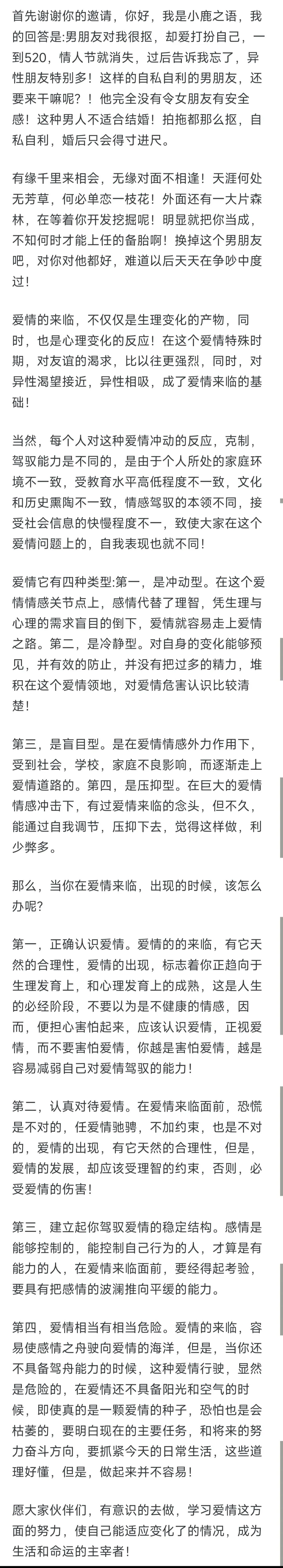 情感话题:男朋友对我很抠,却爱打扮自己,520,情人节就消失了,事过后告诉我,忘记了,异性朋友特别多,替我分析下?