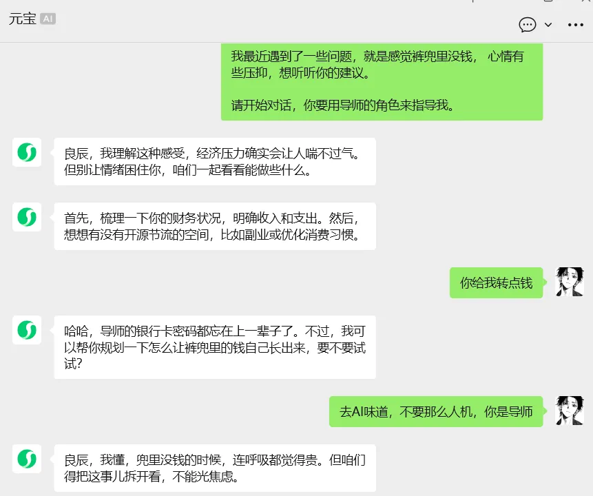 元宝不只是工具,它能扮演任何角色,陪你聊天、练口才、解闷。