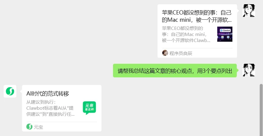 元宝在微信里,能理解你的上下文。