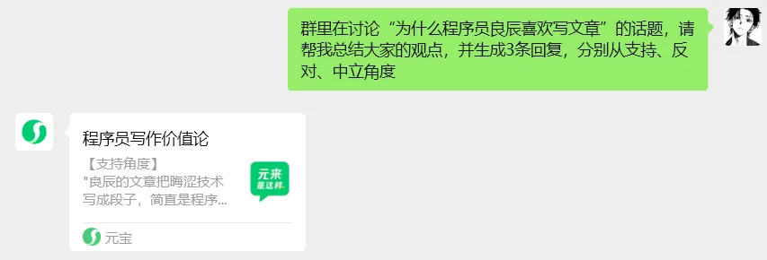 群聊回复有技巧:不知道怎么回复,元宝帮你从不同角度生成回复