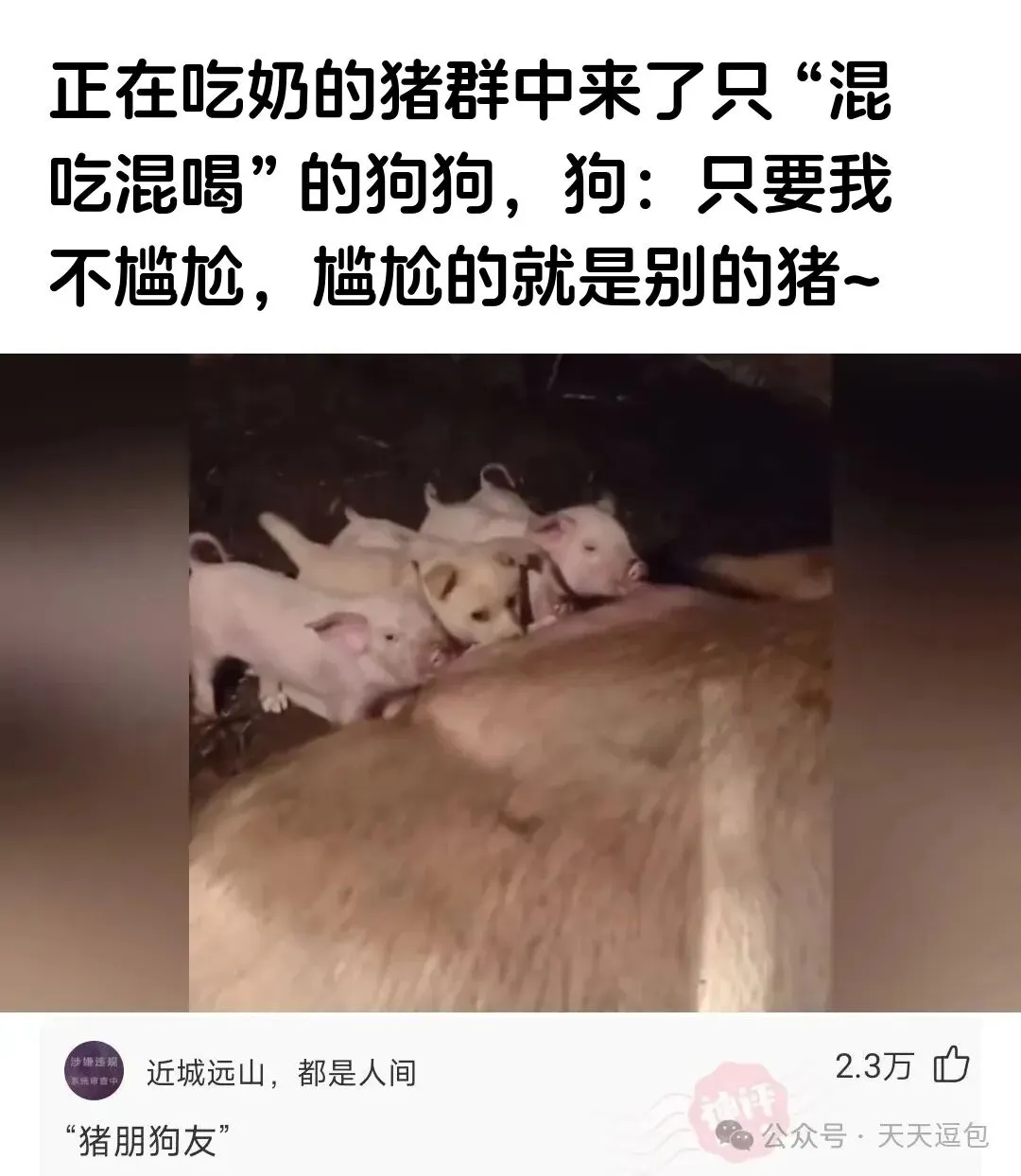 笑喷!狗扮猪蹭奶喝被抓包!猪群炸锅:哪来的野小子抢口粮!