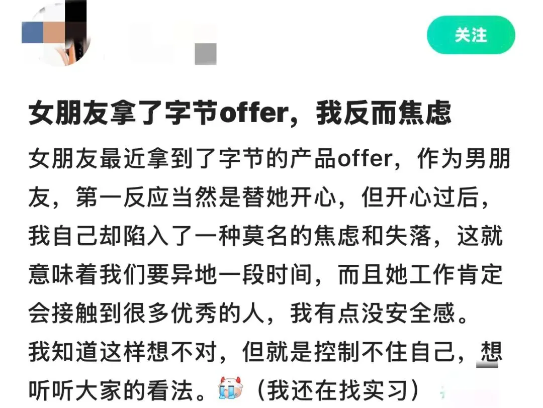 >刚毕业大学生:女朋友拿了字节offer,我反而焦虑