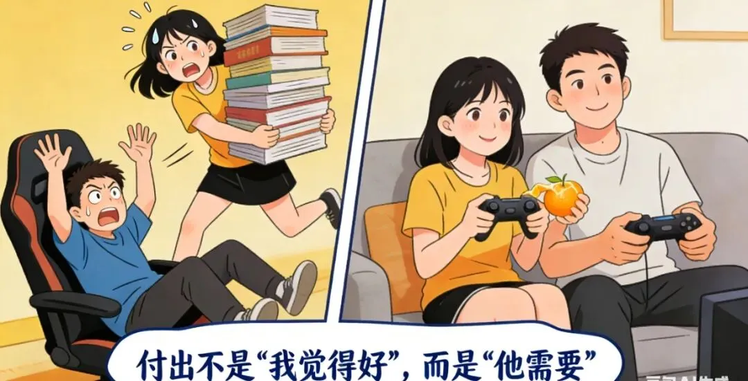 - 反例:男生明明喜欢打游戏,女生却送他“考研资料大礼包”,最后吵架说“我都是为你好”
