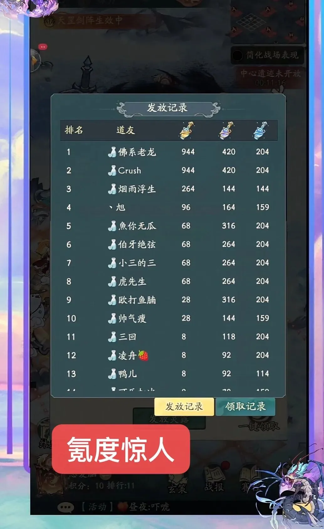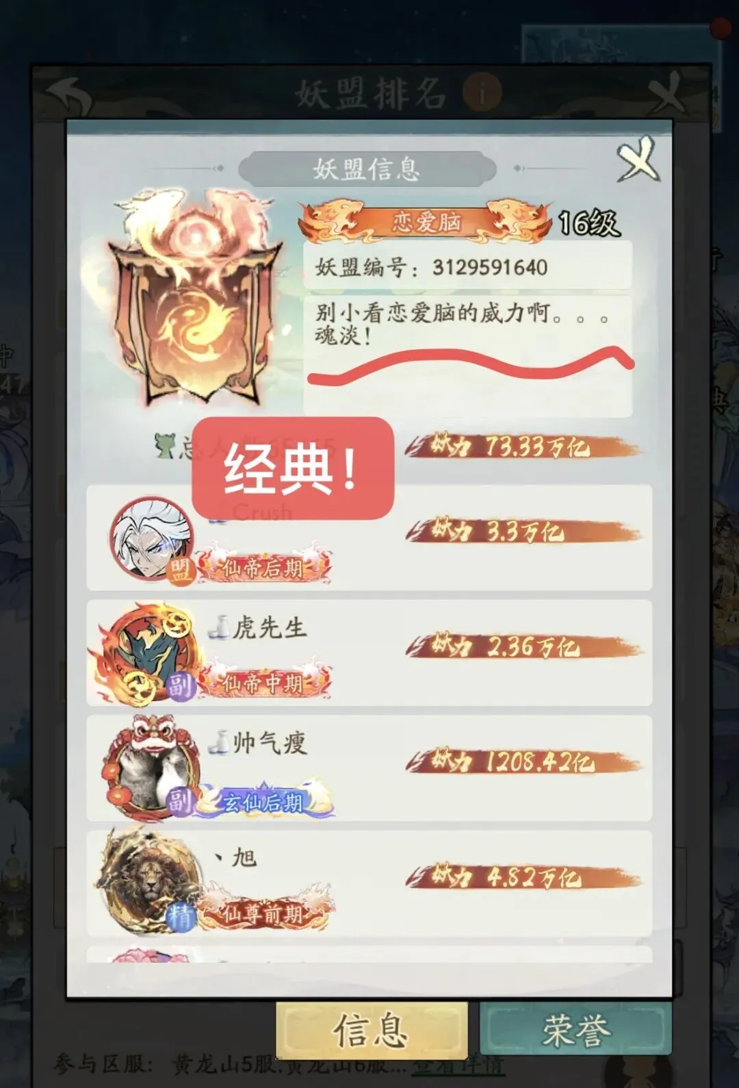 写在前面:接到一篇投稿,讲述了北冥之巅某分组的一场巅峰对决-----恋爱脑大战ACE揽月!这场对决,双方四个大哥拉满648*99的礼包,无数大氪中氪跟进开团,双方从分组第一天第二天开始布局,第三天从白天就开始大战,一直战到晚上21:40恋爱脑惜败,揽月惨胜收官。这是一场荡气回肠的经典战役,双方投入了巨大的人力,物力,财力,据说有盟友为了这一战当天向单位请假,只为了专心打好这一场。众所周知第一次世界大战的时候,著名的凡尔登战役,德法两国投入100个师鏖战凡尔登,双方最终战死25万人,受伤53万,堪称战争史上最惨重的战役之一,被称为凡尔登绞肉机。而我们寻道大千这场揽月大战恋爱脑,几乎是对这场战争的游戏复刻。战后根据排行榜积分统计,折算成人民币,这一战保守估计打出至少60万以上的人民币!!当然,最该感谢你们的是寻道大千项目组,热度拉满,氪金度拉满!****************正文********************中立普通战力妖盟,73万亿,但是相信很多道友对恋爱脑这个妖盟有所耳闻,出了名的不屈不挠,铁骨头,硬汉子。双方之前一度准备合盟,合区的时候本来说跟恋爱脑合,结果出现了碧海苍澜,揽月就没有跟恋爱脑合并。据知情人士透露,这是双方结怨的根源,后续双方数次活动遇到都是激战,每次都是特别精彩的硬仗,而本次北冥之巅冤家聚首,双方更是打出了游戏氪金的上限!众所周知,北冥战场跟昆仑一样,外部人物属性几乎对活动内无影响,也就境界的加成有一点差异,其他增减伤,三维属性全靠活动内氪金,这就给了小盟有逆袭大盟的机会------只要你肯氪,就有得打!双方激烈鏖战三天,恋爱脑盟友遭全程堵截难以上阵,全盟孤军死守,当晚直播间直播全程见证热血时刻,硬顶数小时狂攻,即便揽月联合三家ACE盟友合力围剿,也是在临近活动结束才堪堪攻破大本营,可谓虽败犹荣的典范!