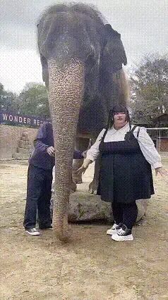 女朋友跟大象合影了,女朋友差点比大象还大!它还抱了她的鼻子!