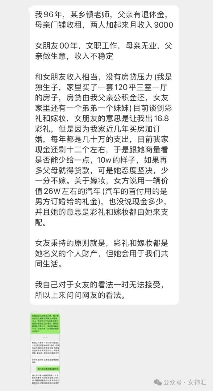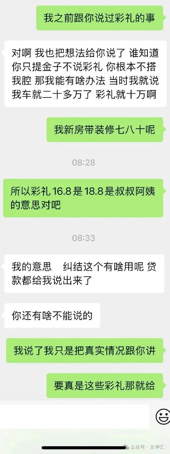 16.8万的彩礼压力大,