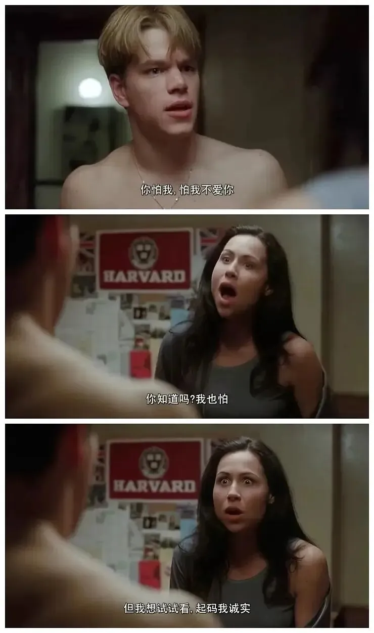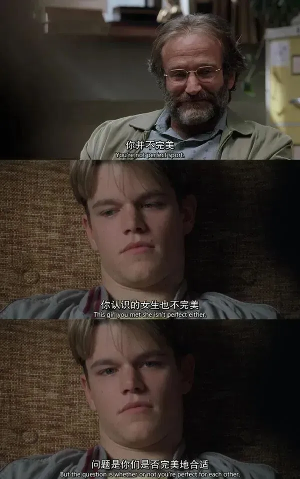 Will的心理医生Sean说过一段话,直击INFP的核心痛点:"你从未试过在她身边醒来,感受到真正的幸福。你从未看过她最脆弱的样子。真正的缺陷才构成了真正的关系。”