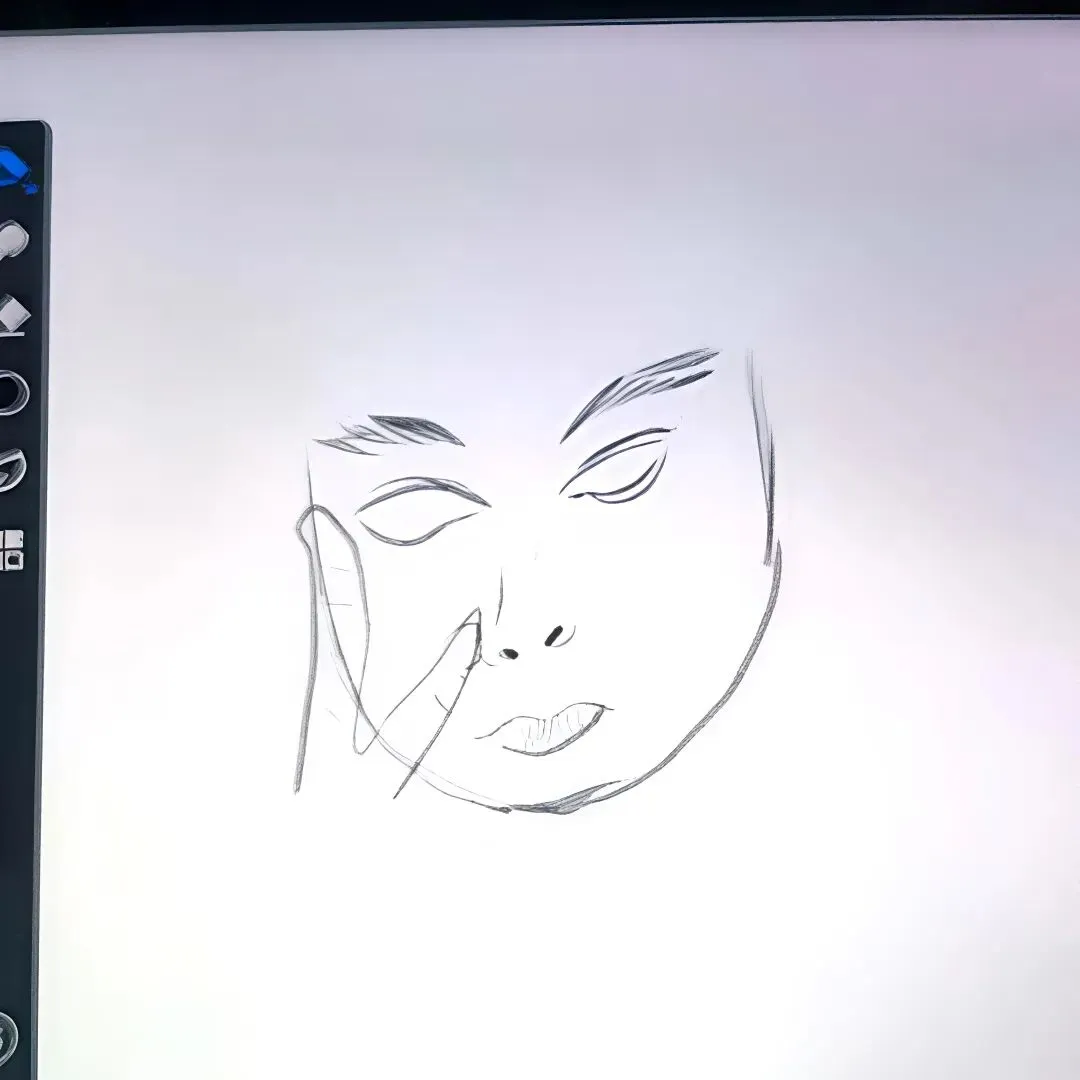 以上作品来源于我非常非常非常(重要的事情说三遍!!!)会画画的“绘画天才”徐老师🤓起因是我给徐老师分享我临摹的板绘作品,徐老师遂去尝试,十多分钟后,徐老师将它发给了我,让我猜他画的是谁。(本人第一反应:这么丑应该不是我吧,那应该是徐老师自己;本人第二反应:眼睛这么大应该不是徐老师,徐老师眼睛才没有这么大,等等,这个比耶的手势怎么有点似曾相识!?)半信半疑猜测是我自己,徐老师对我的回答表示肯定。我看到后觉得好玩又好笑,于是决定把它也放在我的公众号。