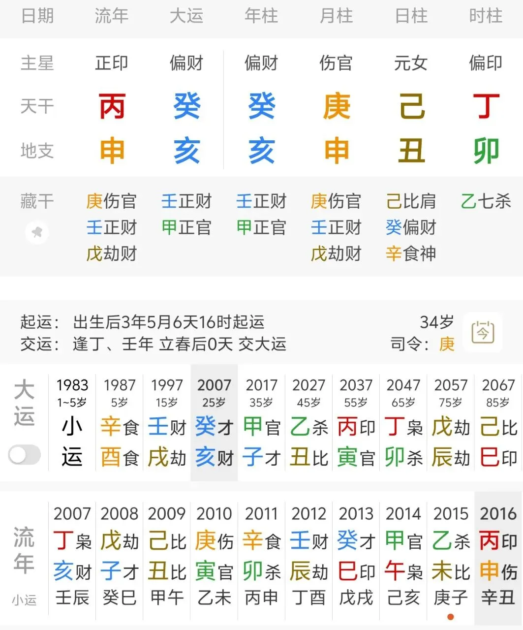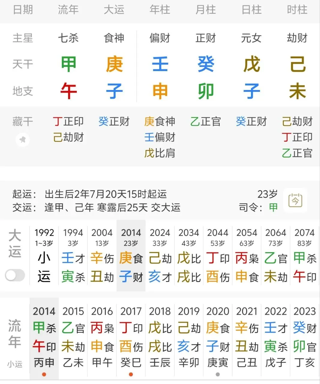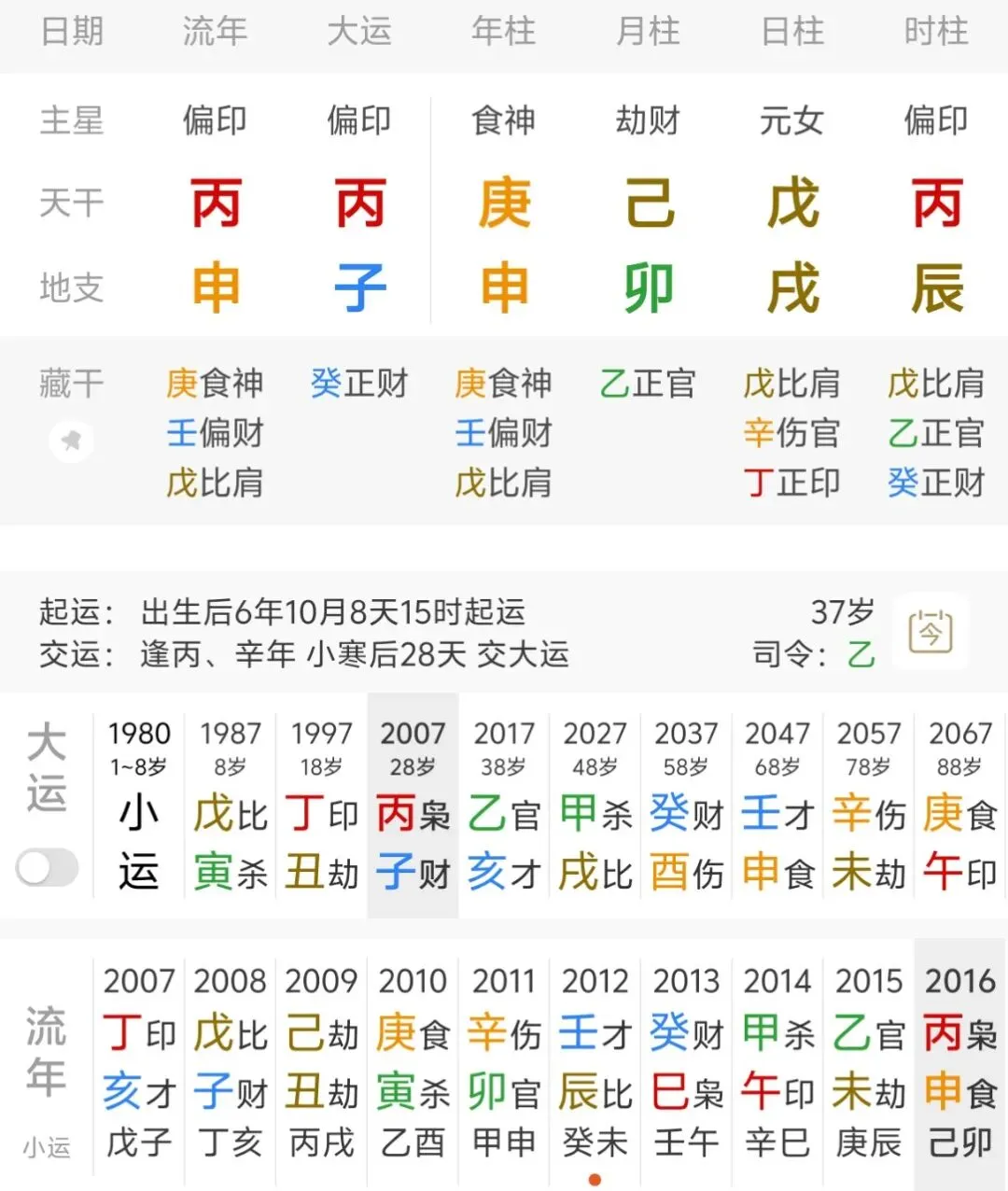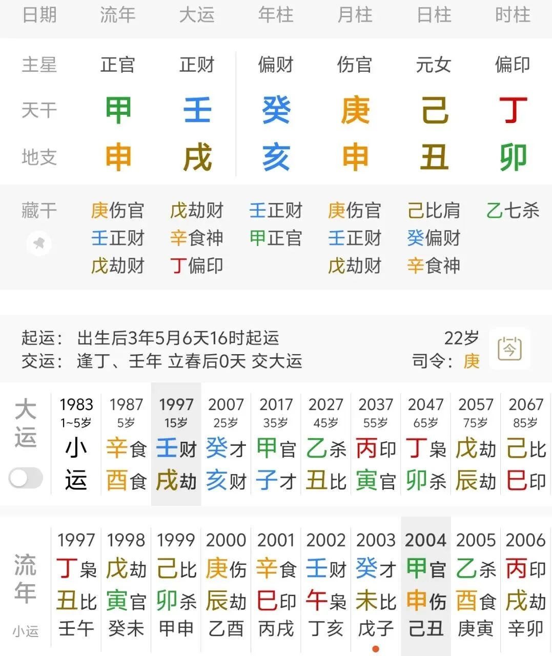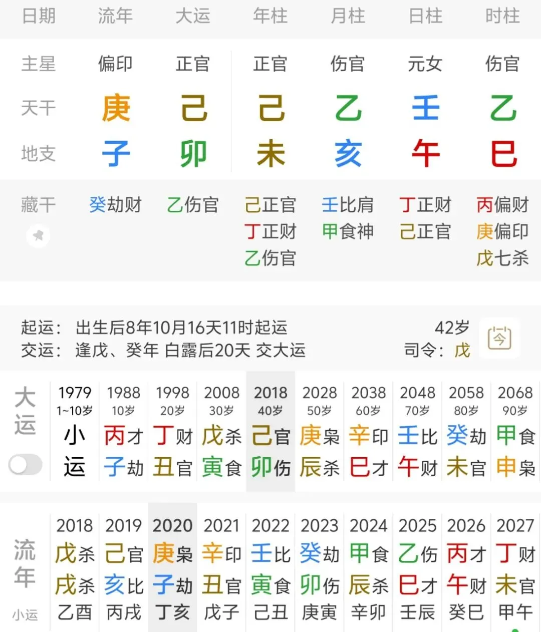 后面庚子大运更是对婚恋变动的激活。(天干伤官见官,夫妻宫容易被影响)
