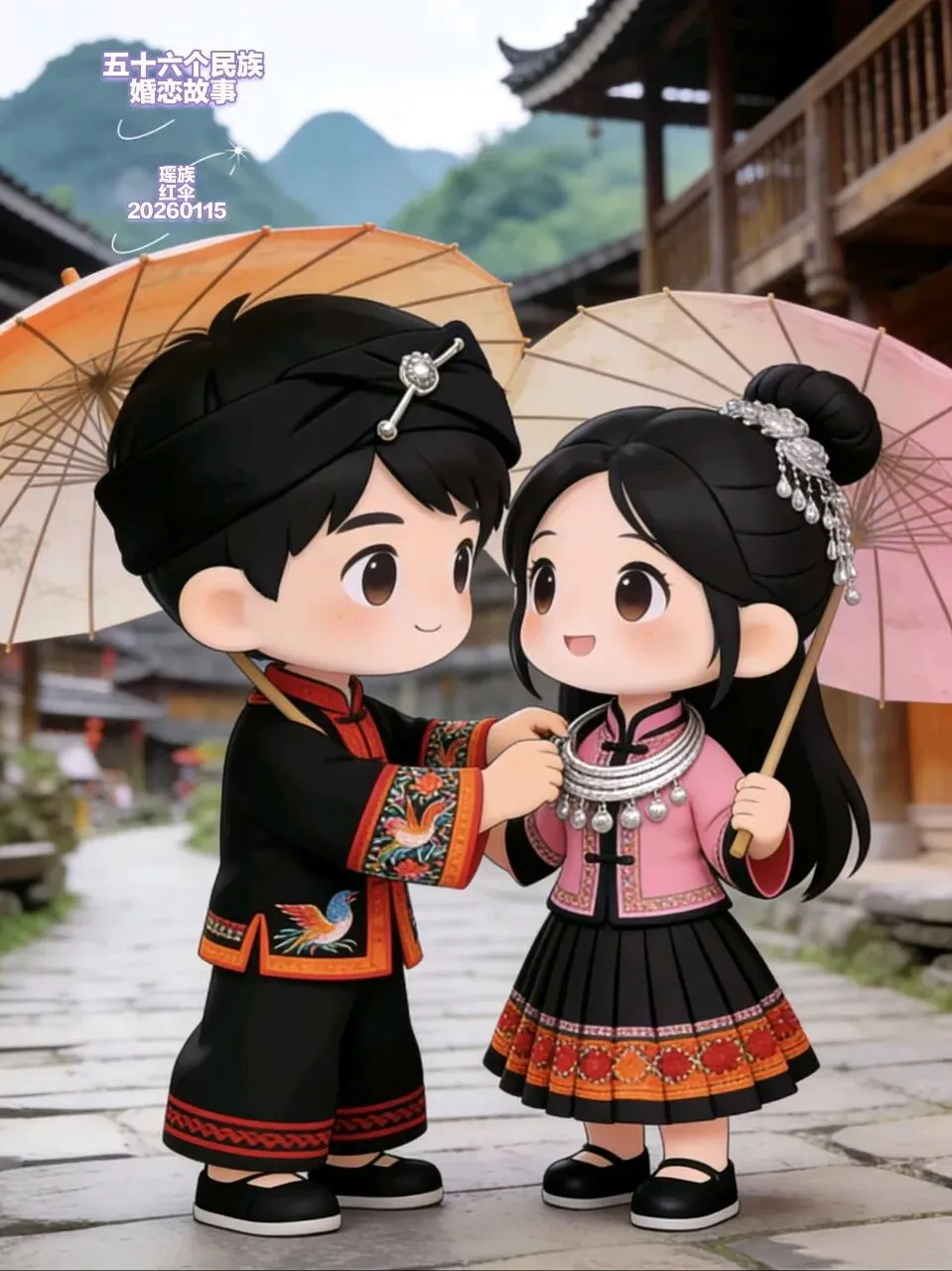 婚后的日子,像瑶山的溪流一样绵长。清晨,阿明上山劈竹,将竹篾削成细密的框子;傍晚,阿妹坐在廊下,用五彩丝线在布面上绣出花鸟纹样。她绣的长鼓纹样,总带着那天圩场上的灵动;他做的竹框,永远留着刚好能放下她绣品的尺寸。有时,阿明会再次敲响长鼓,阿妹便放下针线,与他在院中起舞。红绸带依旧如火焰般飞扬,鼓点里藏着的,早已从初见的试探,变成了细水长流的温柔。