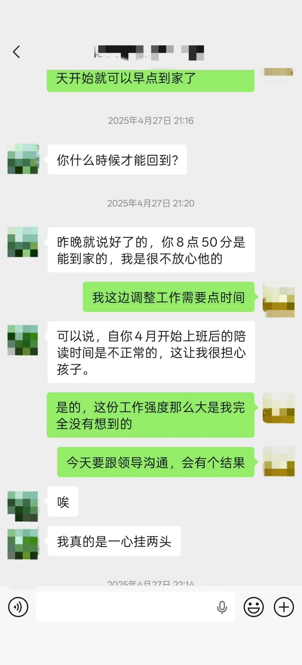 没找到工作的时候,收入不够,日子过得很难受;找到工作后,又跟副业起了冲突。因为我陪读的那个小孩,每天晚上8点40左右到家,我必须在那之前回家,监督他写作业、辅导功课。可我工作老是加班,经常很晚才能回去,跟家长闹了好几次不愉快。再加上工作压力本来就大,那小孩又正处于高二升高三的关键时期,特别难管,我也总分心,精力根本不够用。最后到了7月初,孩子考完期末考试,这份陪读的合作就结束了。