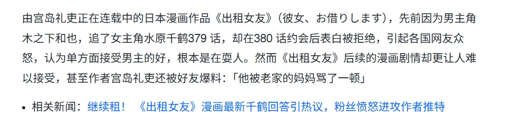 这种情况下在男性受众数量偏多的二次元领域,如果创作者还是一味强调男性单方面努力付出,一味输出“男生需要不断付出才能收获爱情”的观念,势必会被广大受众厌烦,不信看看隔壁《百万租借》,都被喷成啥样了,剧情连自己老妈都看不下去,亲自把宫岛礼吏骂了一顿。