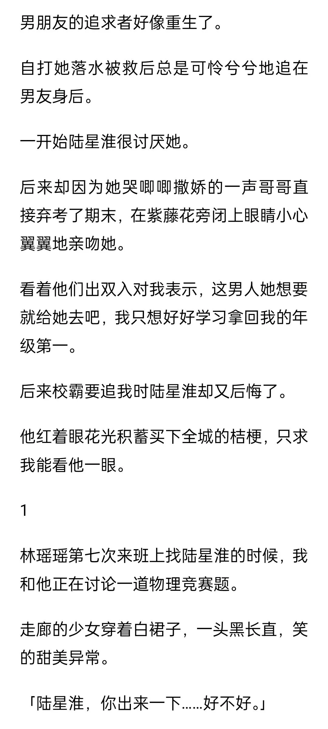 男朋友的追求者好像重生了,自打她落水被救后总是可怜兮兮地追在身后,一开始陆星淮很讨厌她.