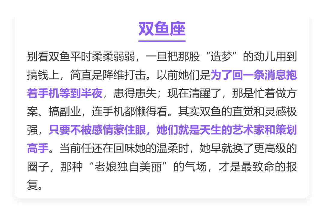 说实话,大家身边.总有那.种一.旦谈恋爱.就“降智”的姑娘,恨不得.把心掏给.对方。其实.这真不是.因为.傻,而是.因为.她们.太重.感情、太纯粹。可一旦.这股劲.儿没得.到回应,或者被伤.透了心,她们“回血”的速度.也是惊人.的。今天.咱们就.聊聊,哪三.个星.座的女.生一旦把.恋爱脑.治好.了,那简直.就是.开了挂。