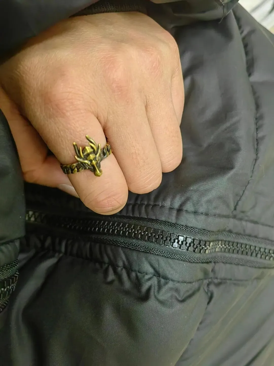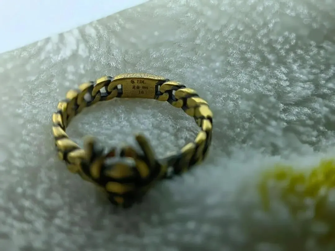 有个小细节特别真实 这戒指链条部分有一点点夹手(尤其冬天皮肤干燥的时候)有时候打字打到一半会被夹到 让我想起小时候玩钥匙圈被夹手的感觉 哈哈 但这种小瑕疵反而让我记得它是活生生的金子 不是那种冰冷的“理财产品”