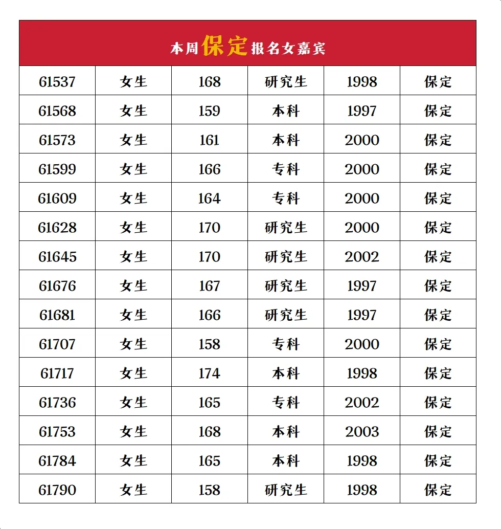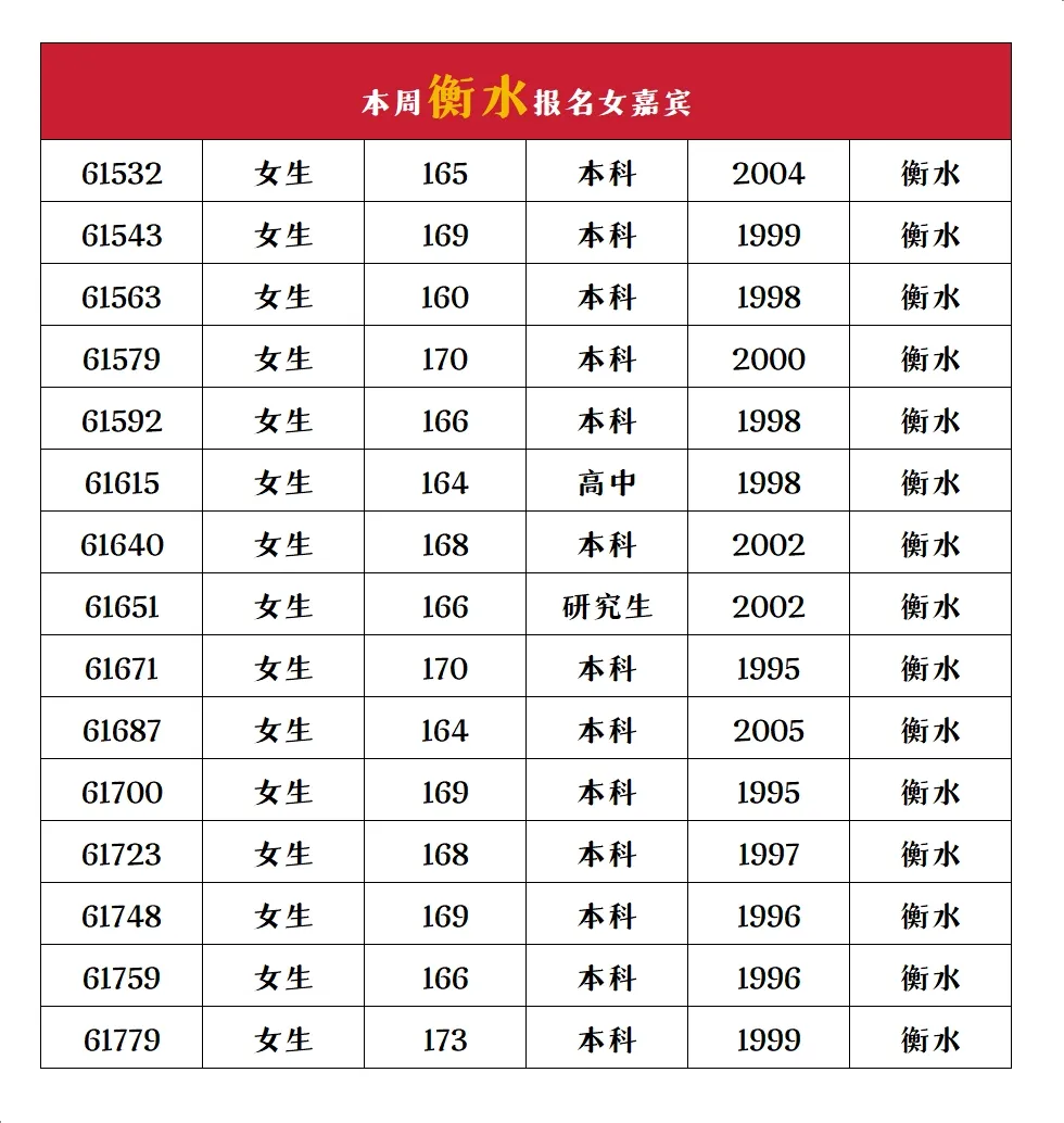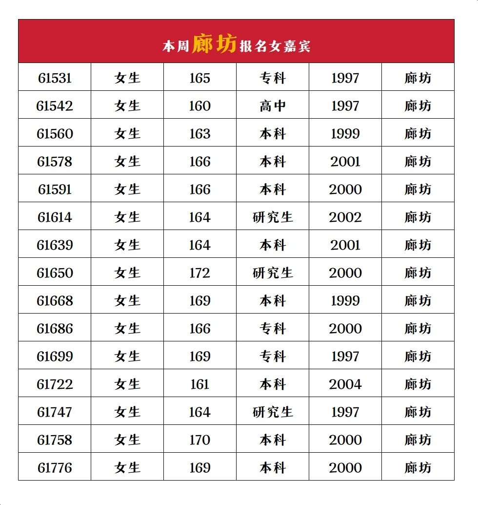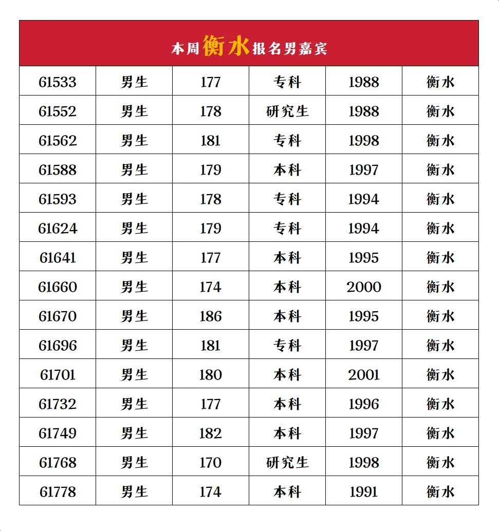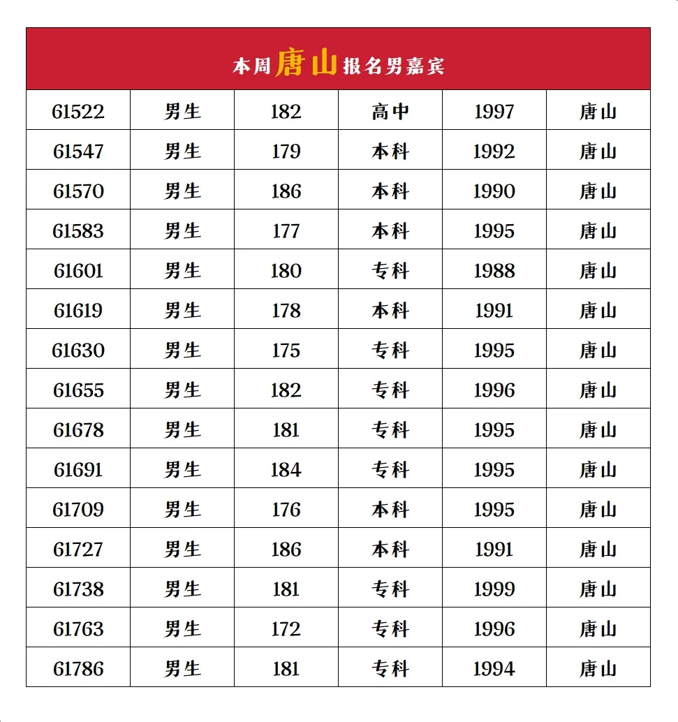 本期恋爱匹配已报名嘉宾,篇幅有限,每个城市仅展示部分嘉宾,目前河北开放城市:石家庄、保定、唐山、邯郸、沧州、邢台、廊坊、衡水、张家口。