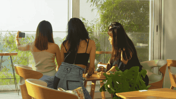 她们喜欢挑选一处好看的地方去打卡、拍照。