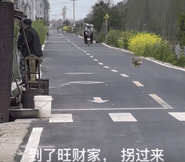 直到过了前男友家地盘,到了旺财家的地盘,它才会从对面走回来。