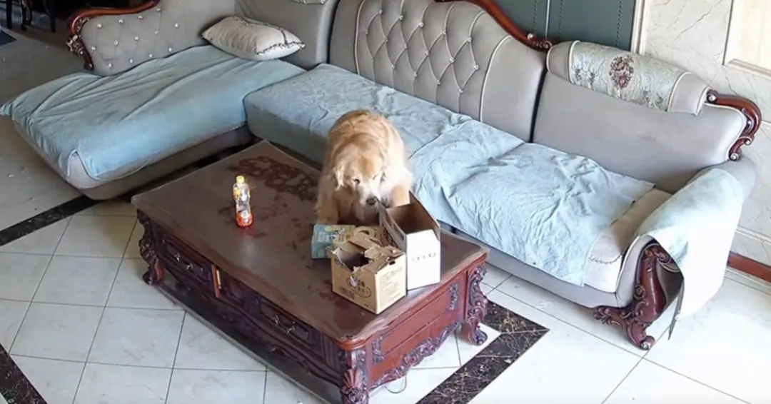 它竟然就给零食盒开了一个小口,自己叼走其中一份食物美滋滋的吃去了。