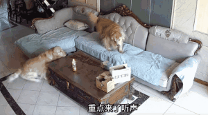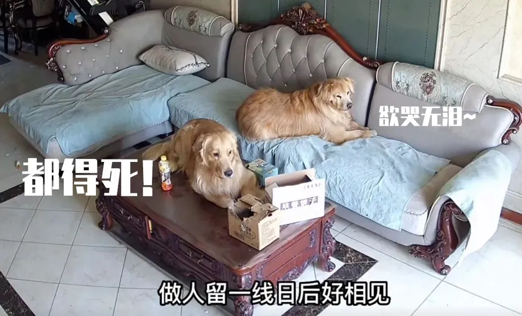 要不是铲屎官@金毛大面包-泰德宠 家监控拍到了这一幕,铲屎官万万没想到家里这两只金毛戏能这么多!