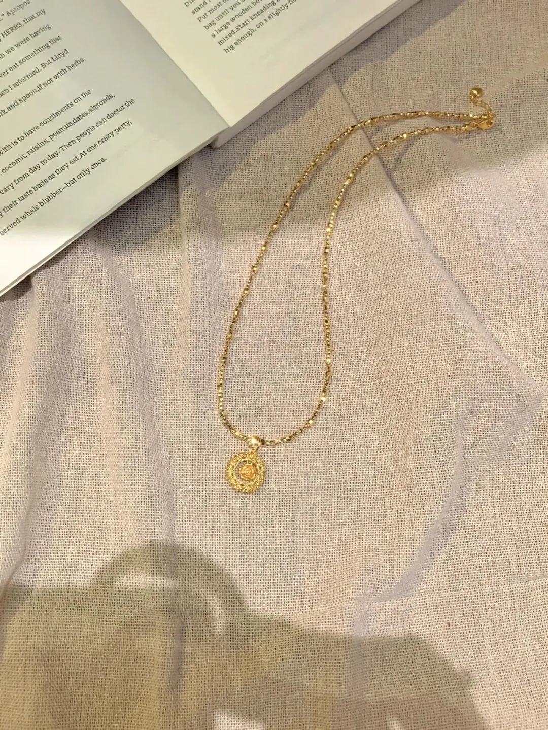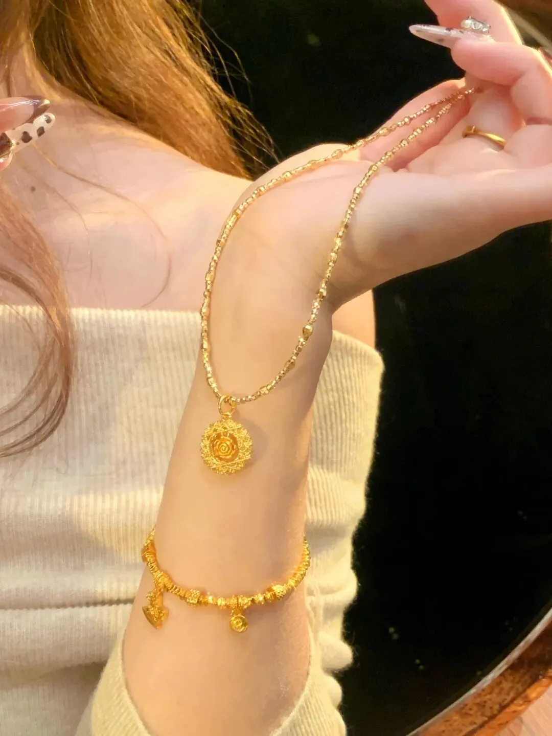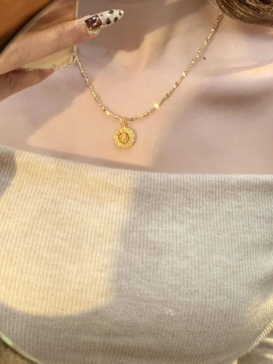 晚上回家我试着把项链从盒子里拿出来在台灯下转了两圈光面珠子反光特别亮那种漩涡纹路摸起来有点像小时候玩指尖陀螺的边边比起放在抽屉的老气金链子这条戴出去真的会被问是哪家的我本来以为买金首饰就图个保值结果发现审美和情绪价值其实更重要而且我也第一次有点认同分批购入的思路不用一口气买很重的分几次慢慢来既能给女友惊喜也不至于让自己压力大