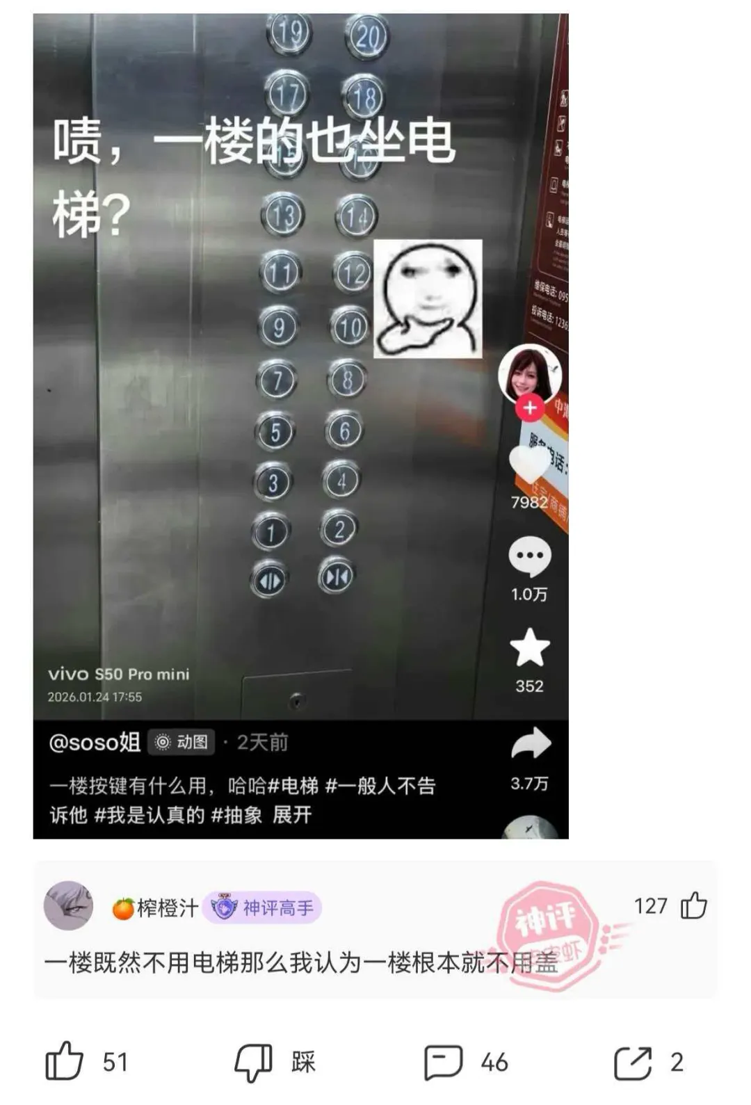 搞笑神回复09:一楼既然不用电梯,那么我认为一楼根本就不用盖!