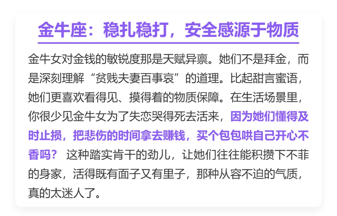 其实,不管是.哪个星.座,当你开.始专注.于提.升自.己、努力赚.钱的时候,你会.发现世.界都变.得和.颜悦.色了。愿每个.姑娘.都能拥.有赚钱.的能.力,也有.享受.爱情的.勇气,活成.自己最.想成为.的样.子!