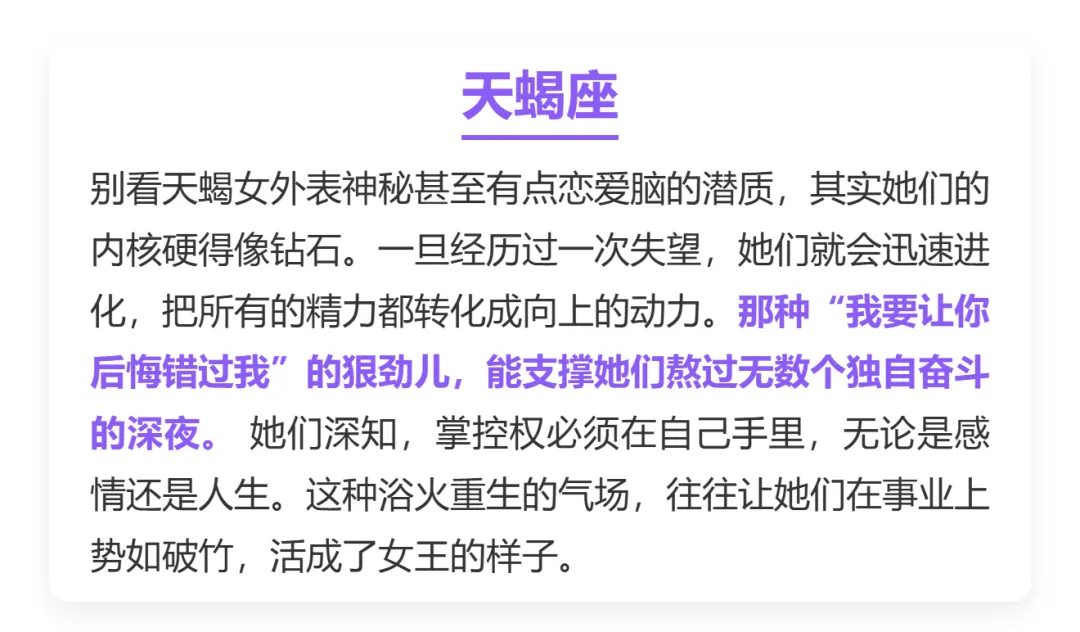 在这个感.情容易让.人迷失.的年代,有些姑.娘活得特.别清.醒。她们.不是不需.要爱情,而是太知.道自.己要.什么了——相比于把.希望寄.托在别.人身上,她们更相.信握在手.里的.底气。这种“人间清.醒”不是冷.漠,而是.一种对自.己负责的.高级自.爱。今天.咱们就.来盘点一.下,哪三.个星座.的女.生最.不恋.爱脑,一心只.想搞.事业变强。